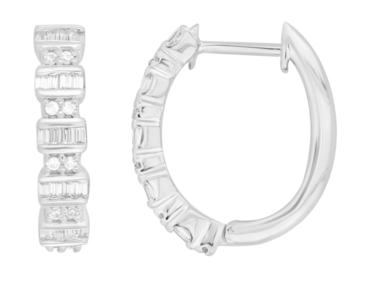 Home Earrings LADIES HOOPS EARRINGS 0.33CT ROUND/BAGUETTE DIAMOND 10K WHITE GOLD