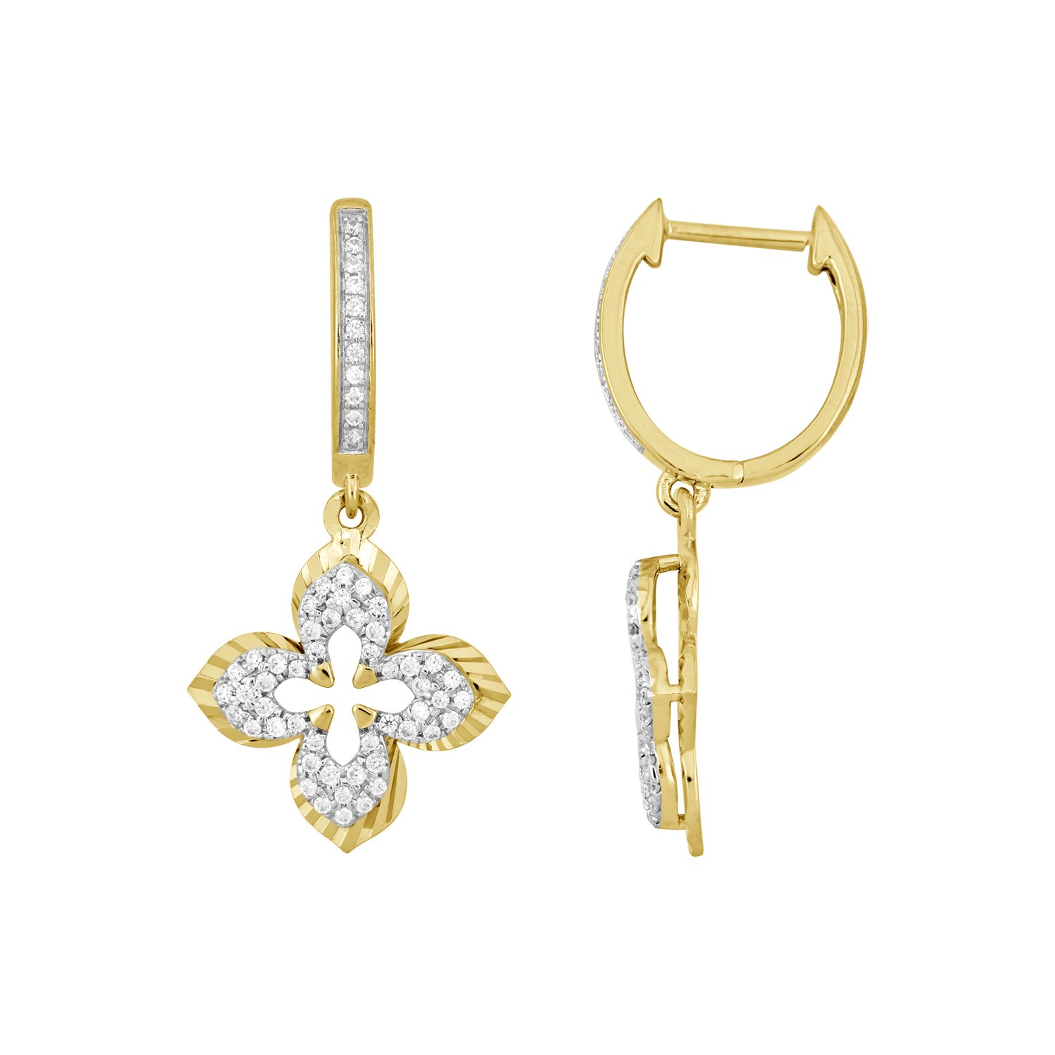 LADIES HOOPS EARRINGS 0.33CT ROUND DIAMOND 10K YELLOW GOLD