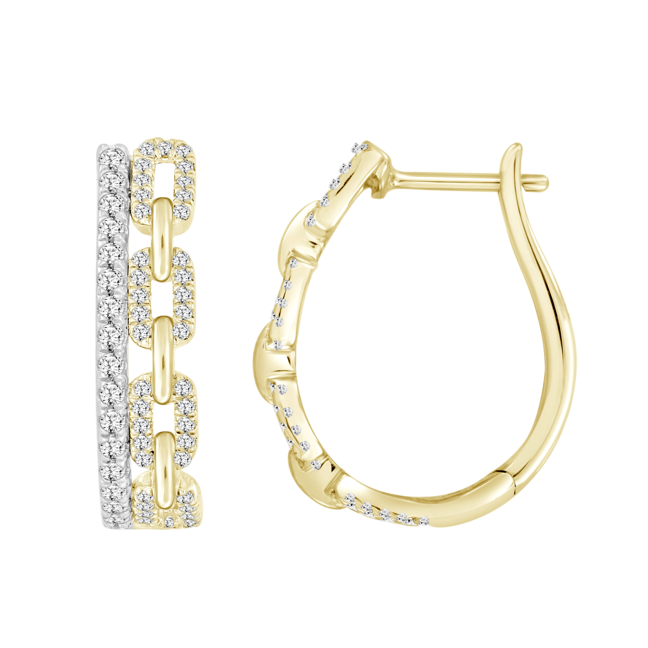 Home Earrings LADIES HOOPS EARRINGS 0.50CT ROUND/BAGUETTE DIAMOND 14K YELLOW GOLD