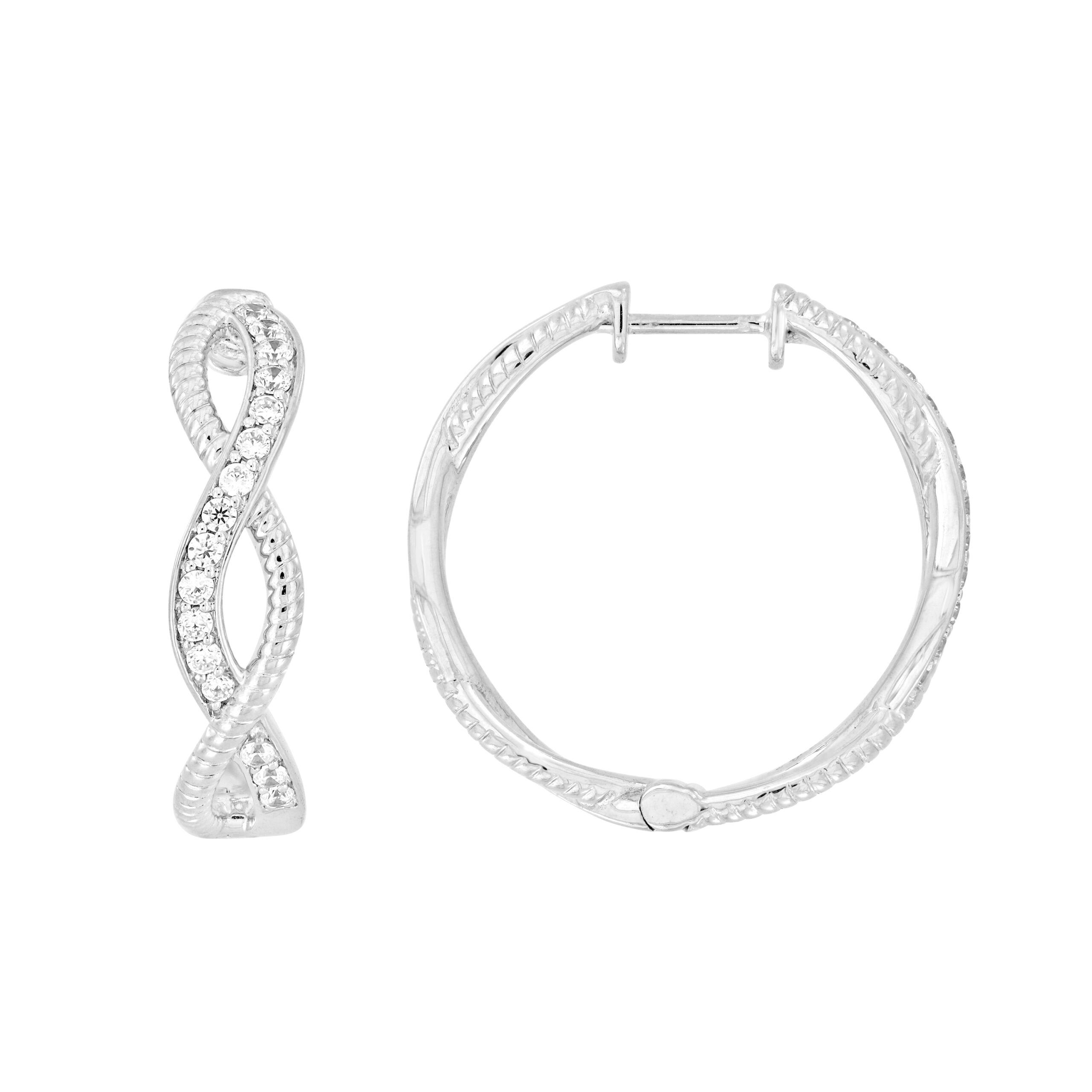 LADIES HOOPS EARRINGS 0.50CT ROUND DIAMOND 10K WHITE GOLD