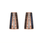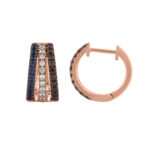 LADIES HOOPS EARRINGS 0.75CT ROUND/DARK BROWN/BLUE DIAMOND 14K ROSE GOLD