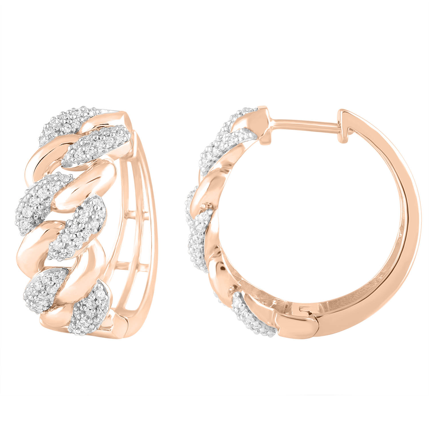 Home Earrings LADIES HOOPS EARRINGS 0.75CT ROUND DIAMOND 10K ROSE GOLD