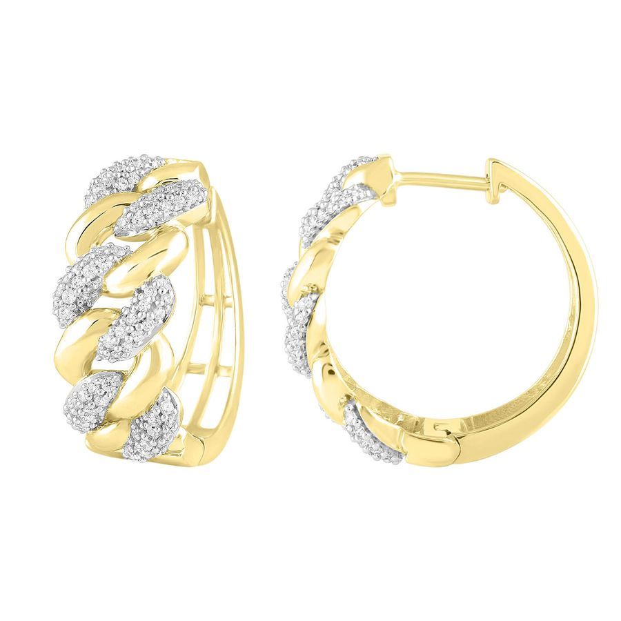 LADIES HOOPS EARRINGS 0.75CT ROUND DIAMOND 10K YELLOW GOLD