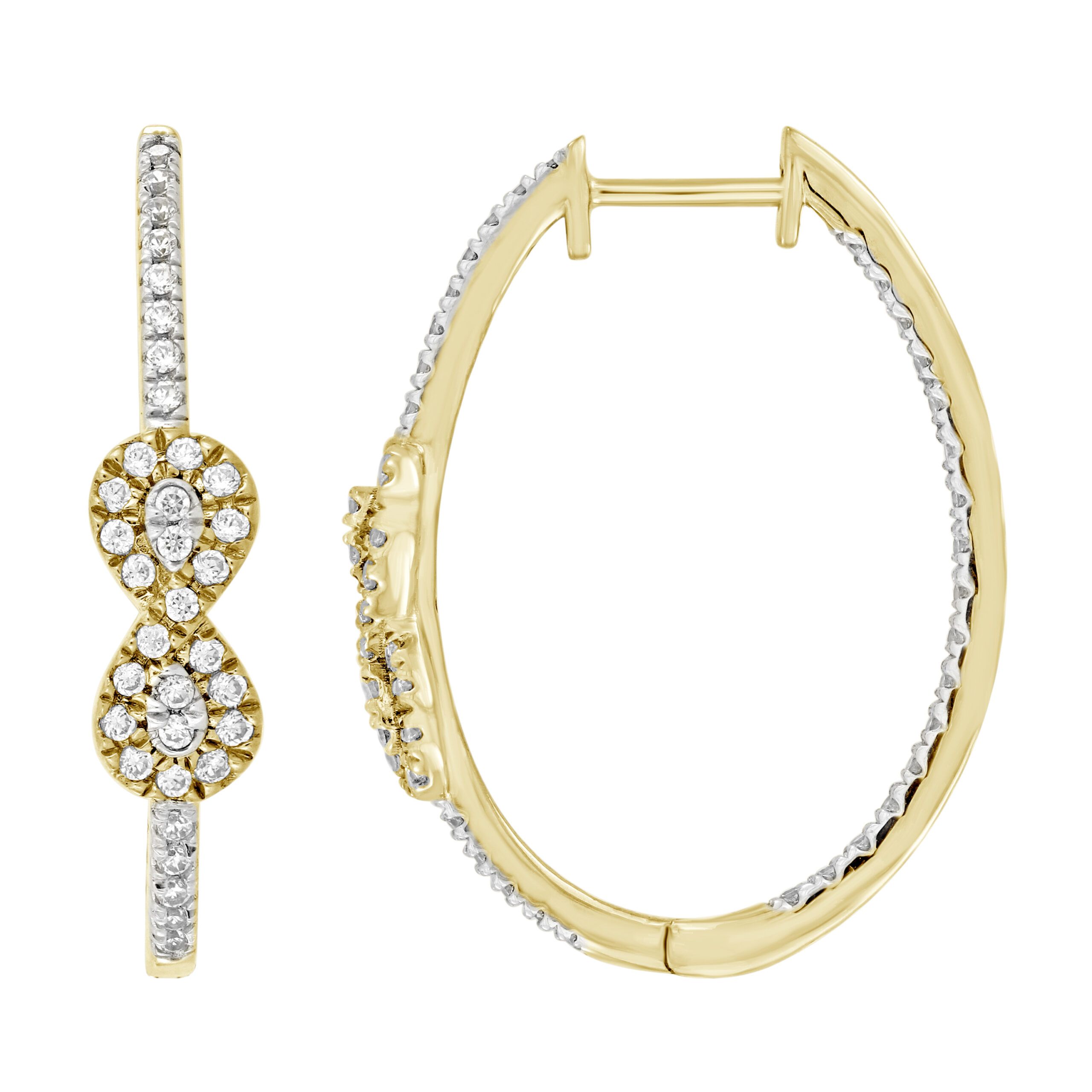 LADIES HOOPS EARRINGS 0.75CT ROUND DIAMOND 10K YELLOW GOLD