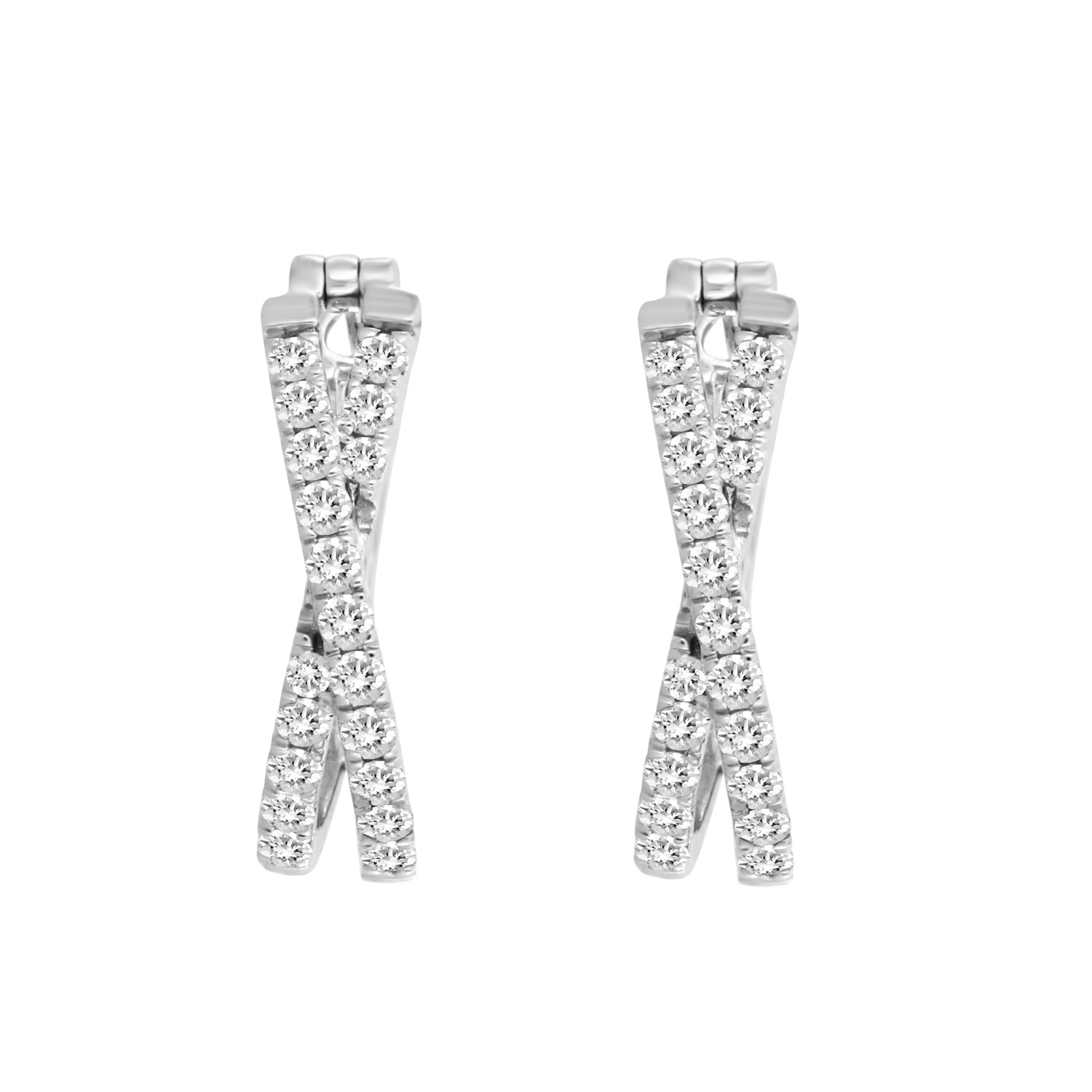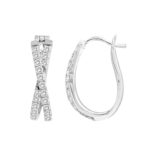 LADIES HOOPS EARRINGS 1.00CT ROUND DIAMOND 10K WHITE GOLD