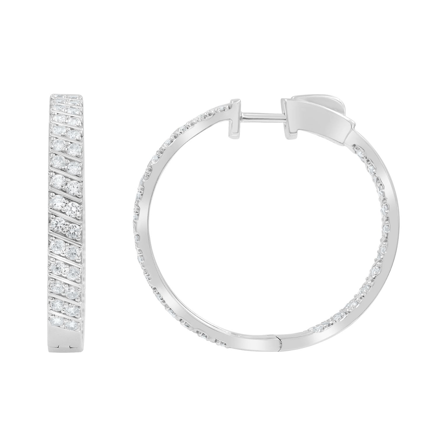LADIES HOOP EARRINGS 2.00CT ROUND DIAMOND 10K WHITE GOLD