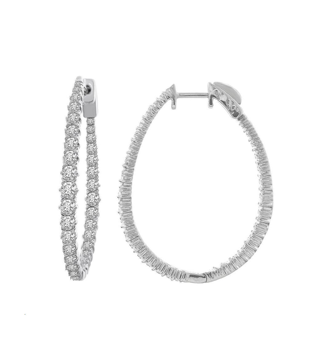 LADIES HOOP EARRINGS 5.00CT ROUND DIAMOND 14K WHITE GOLD