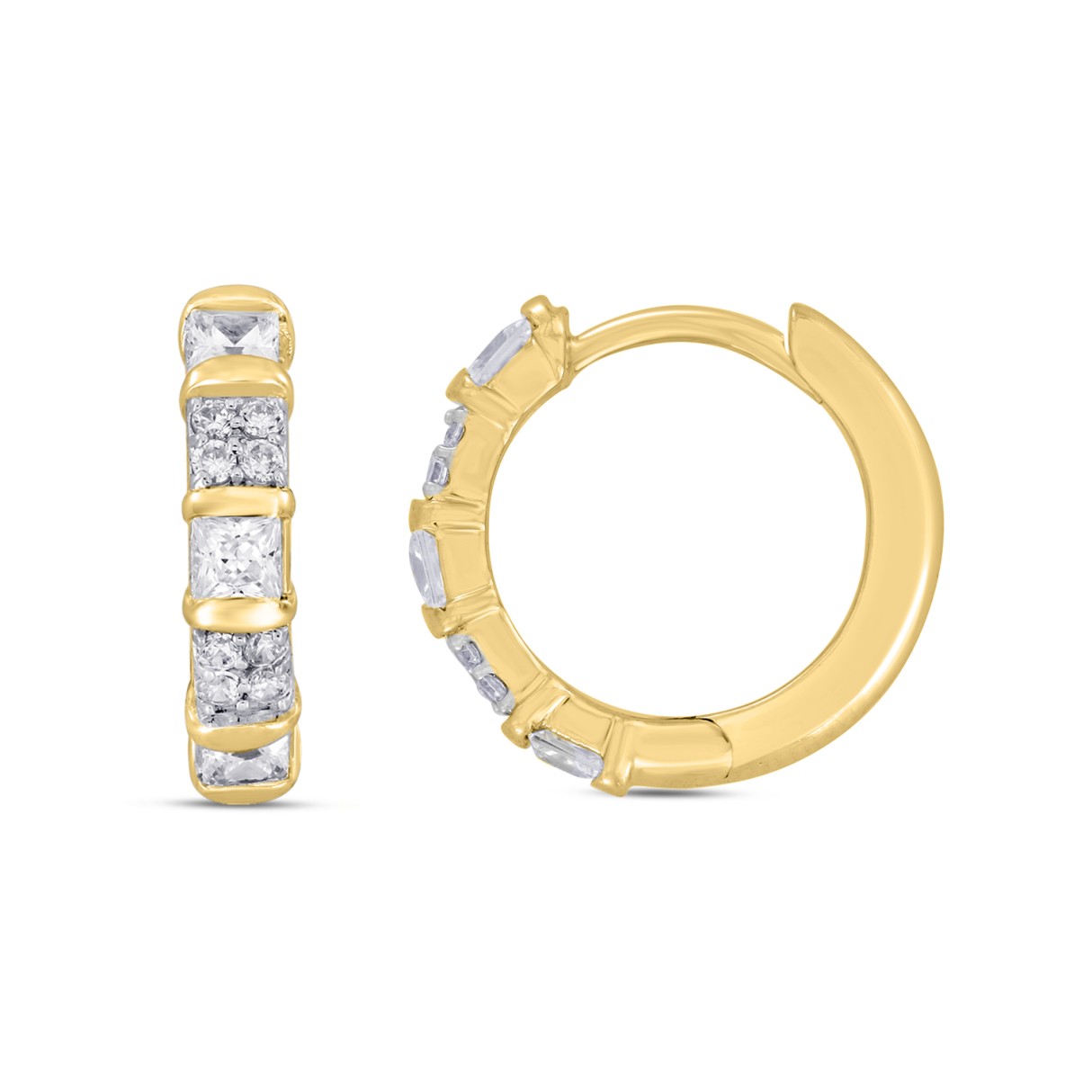 LADIES HOOPS EARRINGS EARRINGS 3/4CT ROUND/PRINCESS DIAMOND 14K YELLOW GOLD