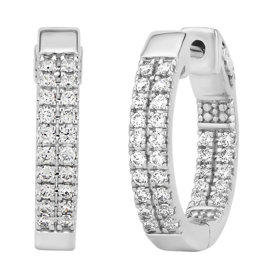 LADIES IN/OUT HOOP EARRINGS 1.00CT ROUND DIAMOND 14K WHITE GOLD (SI QUALITY)