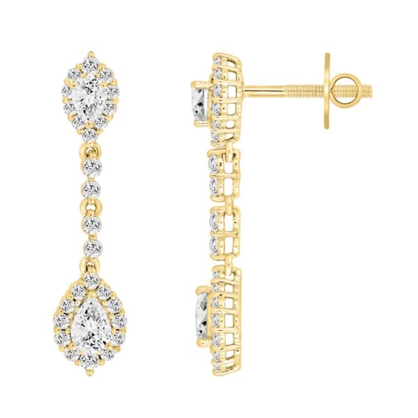 LADIES LINEAR EARRINGS 2 3/4CT PEAR/ROUND DIAMOND 14K YELLOW GOLD (CENTER STONE PEAR DIAMOND 1CT )
