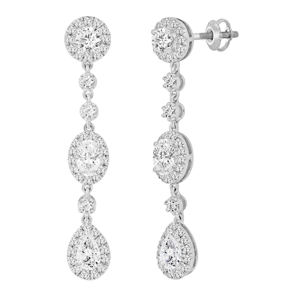 LADIES LINEAR EARRINGS 3 1/2CT OVAL/ROUND/PEAR DIAMOND 14K WHITE GOLD