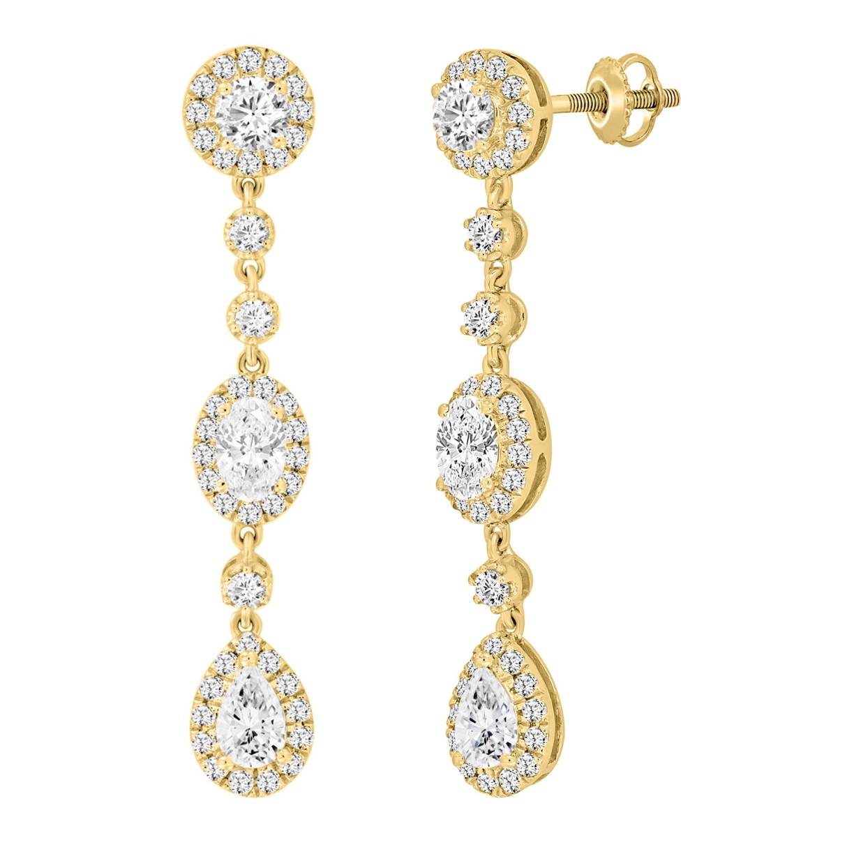 LADIES LINEAR EARRINGS 3 1/2CT OVAL/ROUND/PEAR DIAMOND 14K YELLOW GOLD