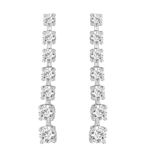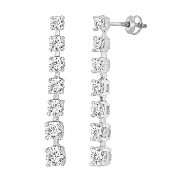 LADIES LINEAR EARRINGS 3CT ROUND DIAMOND 14K WHITE GOLD