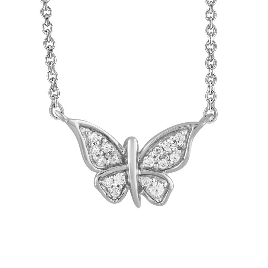LADIES NECKLACE 0.05CT ROUND DIAMOND 10K WHITE GOLD