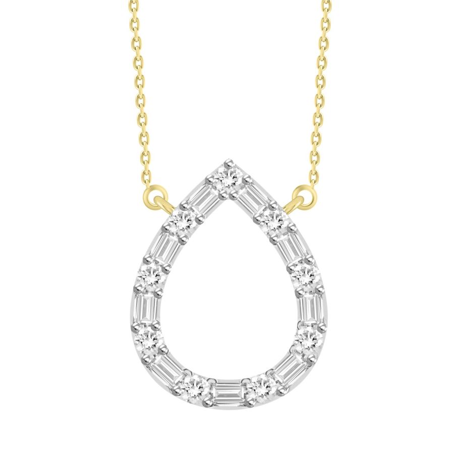 LADIES NECKLACE 0.10CT ROUND/BAGUETTE DIAMOND 10K YELLOW GOLD