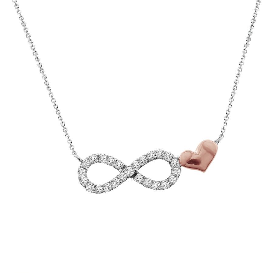 LADIES NECKLACE 0.10CT ROUND DIAMOND 10K WHITE/ROSE GOLD
