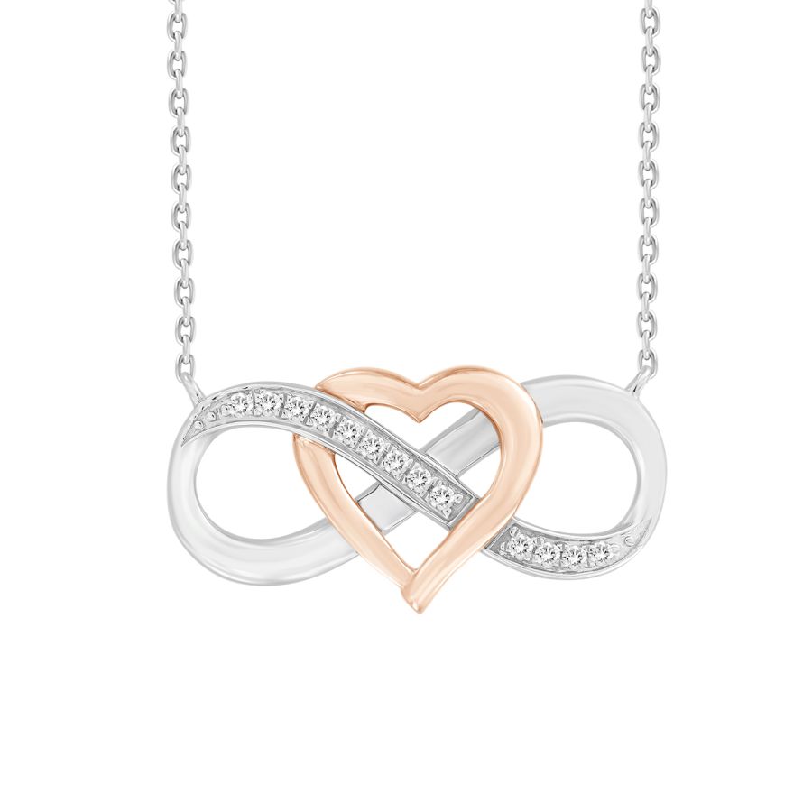 LADIES NECKLACE 0.10CT ROUND DIAMOND 10K WHITE/ROSE GOLD