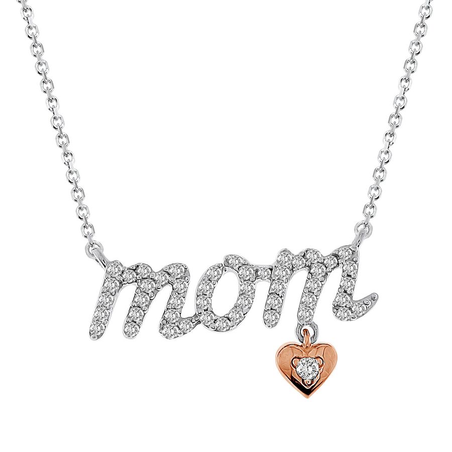LADIES NECKLACE 0.15CT ROUND DIAMOND 14K WHITE/ROSE GOLD