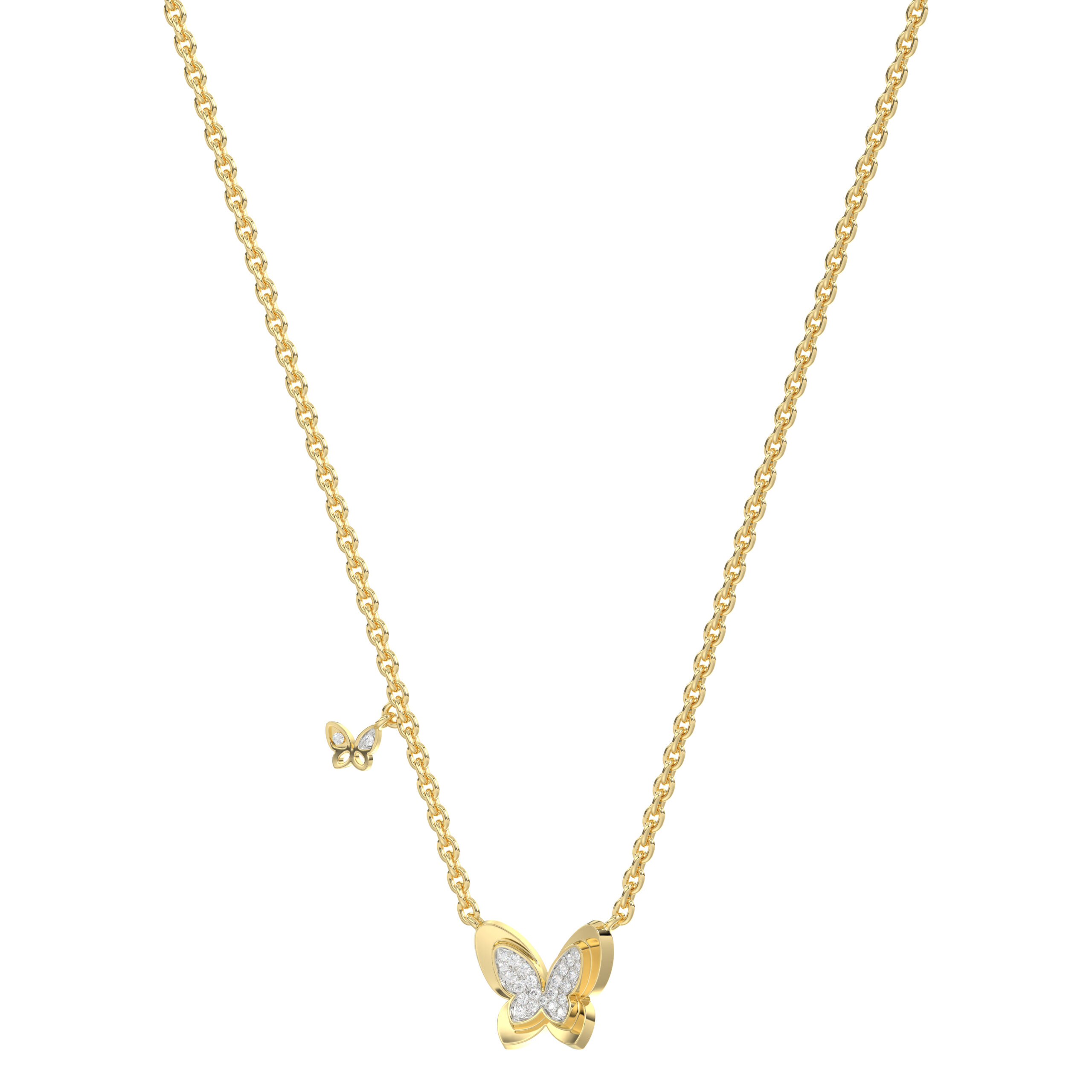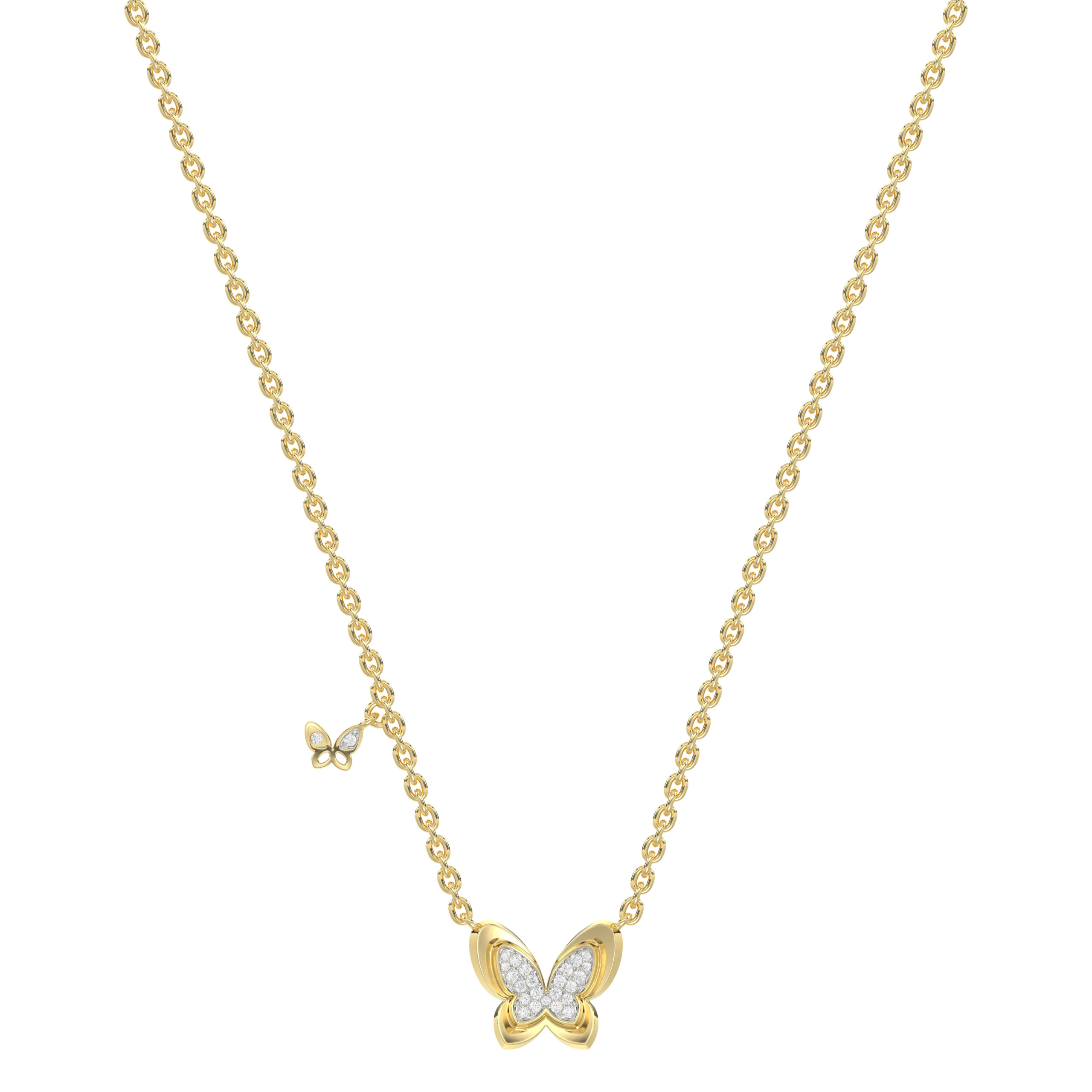 LADIES NECKLACE 0.15CT ROUND DIAMOND 14K YELLOW GOLD