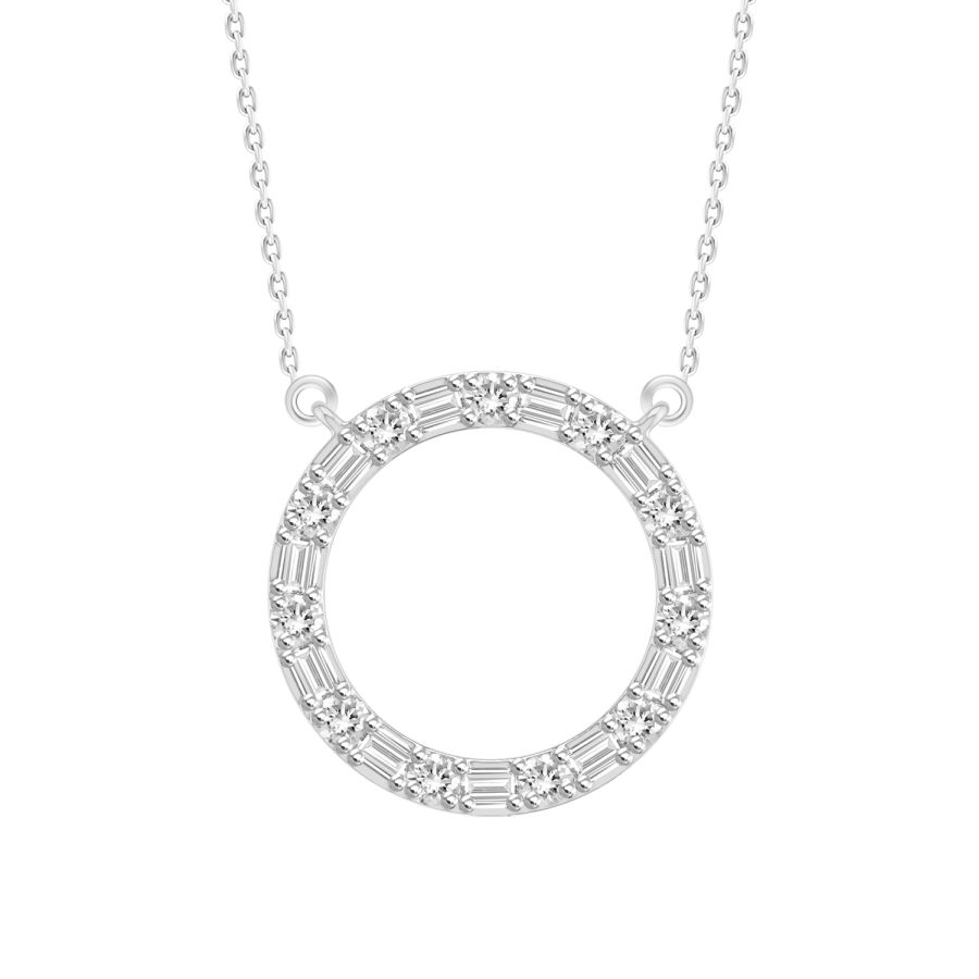 LADIES NECKLACE 0.75CT ROUND/BAGUETTE DIAMOND 14K WHITE GOLD