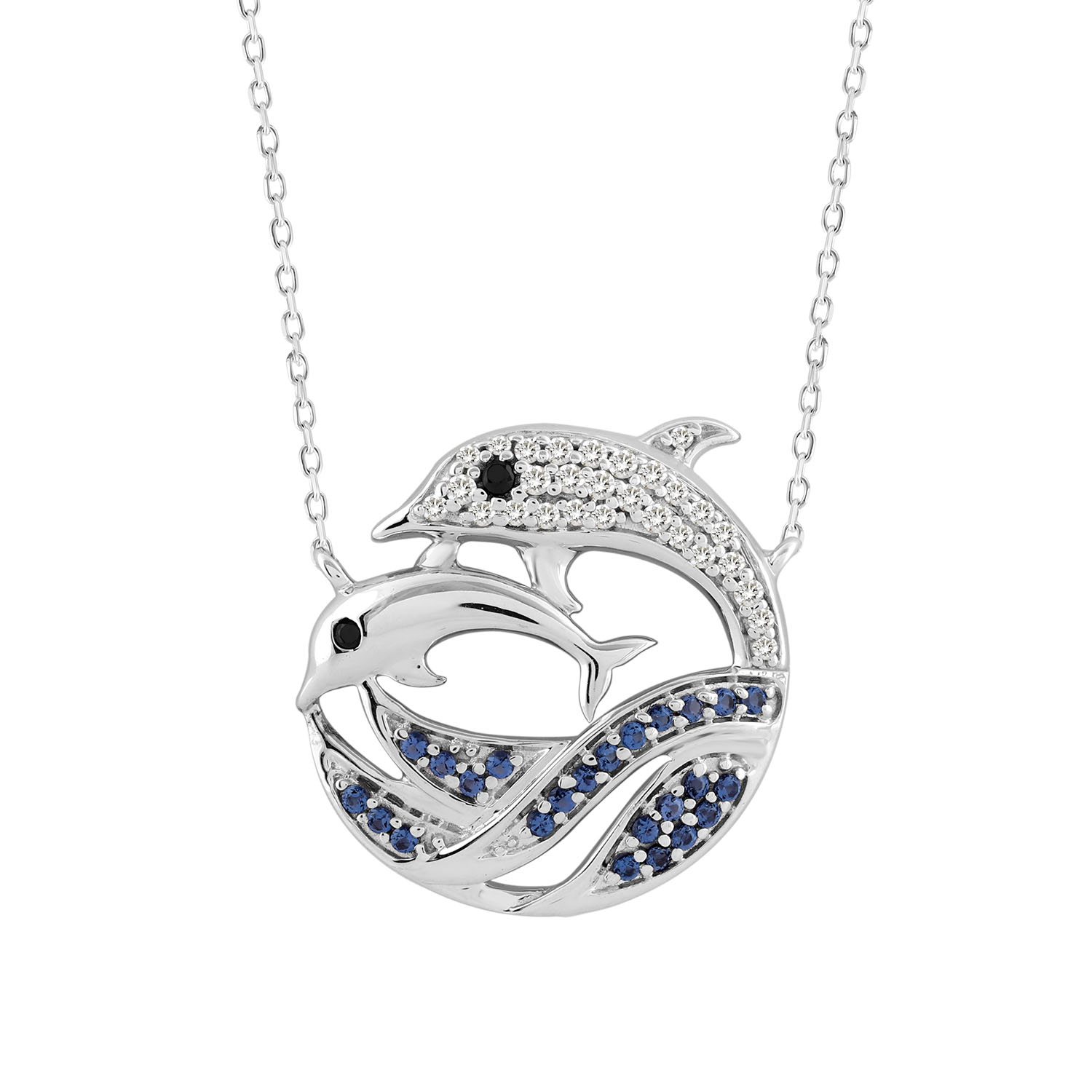 LADIES NECKLACE 0.20CT ROUND/BLACK DIAMOND 14K WHITE GOLD WITH CHAIN
