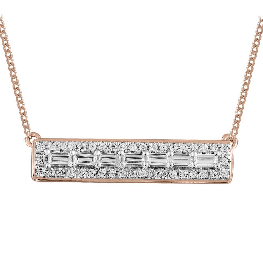 LADIES NECKLACE 0.25CT ROUND/BAGUETTE DIAMOND 10K ROSE GOLD