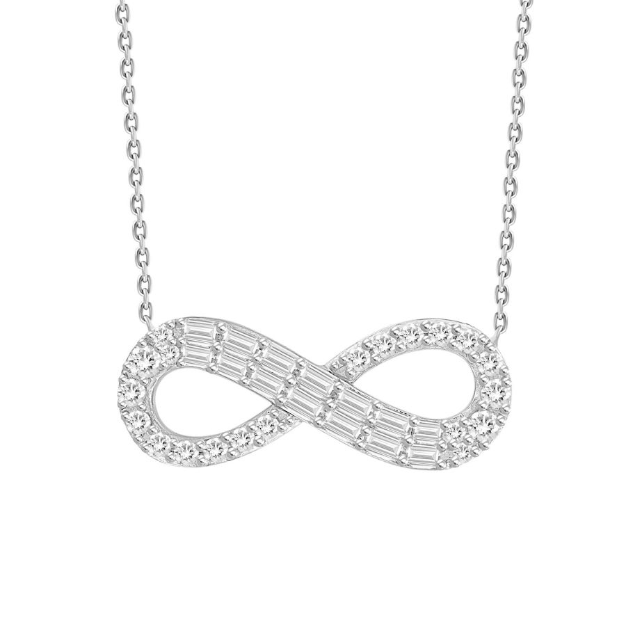 LADIES NECKLACE 0.25CT ROUND/BAGUETTE DIAMOND 10K WHITE GOLD