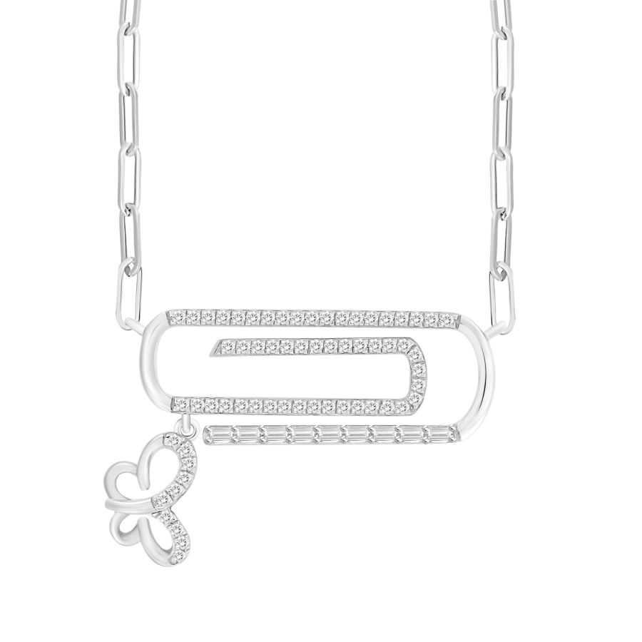 LADIES NECKLACE 0.25CT ROUND/BAGUETTE DIAMOND 10K WHITE GOLD
