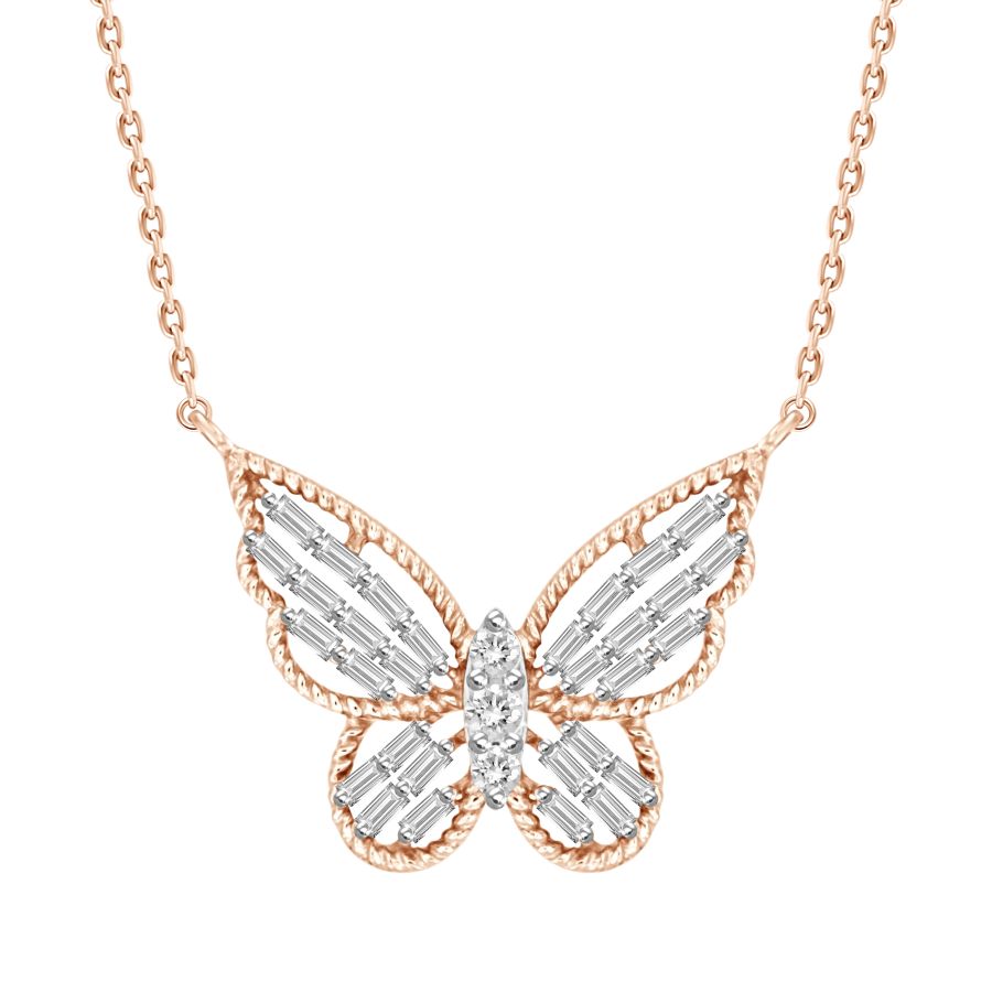 LADIES NECKLACE 0.25CT ROUND/BAGUETTE DIAMOND 14K ROSE GOLD