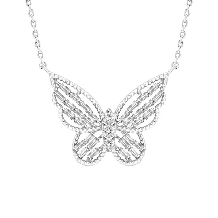 LADIES NECKLACE 0.25CT ROUND/BAGUETTE DIAMOND 14K WHITE GOLD (SI QUALITY)