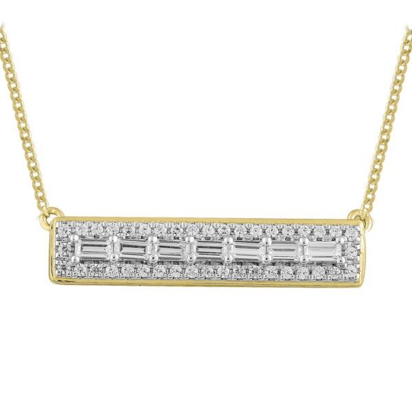 LADIES NECKLACE 0.25CT ROUND/BAGUETTE DIAMOND 14K YELLOW GOLD (SI QUALITY)