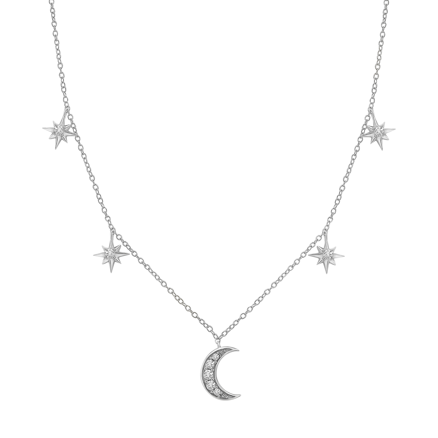 LADIES NECKLACE 0.25CT ROUND DIAMOND 10K STERLING SILVER WHITE