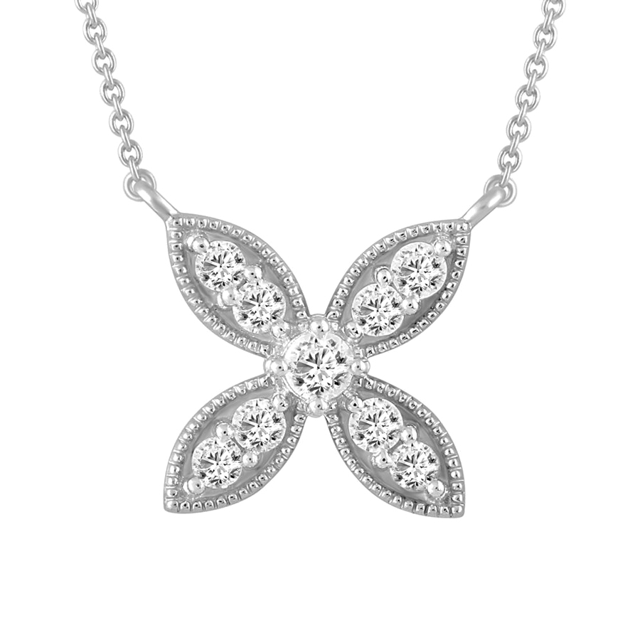 LADIES NECKLACE 0.25CT ROUND DIAMOND 14K WHITE GOLD