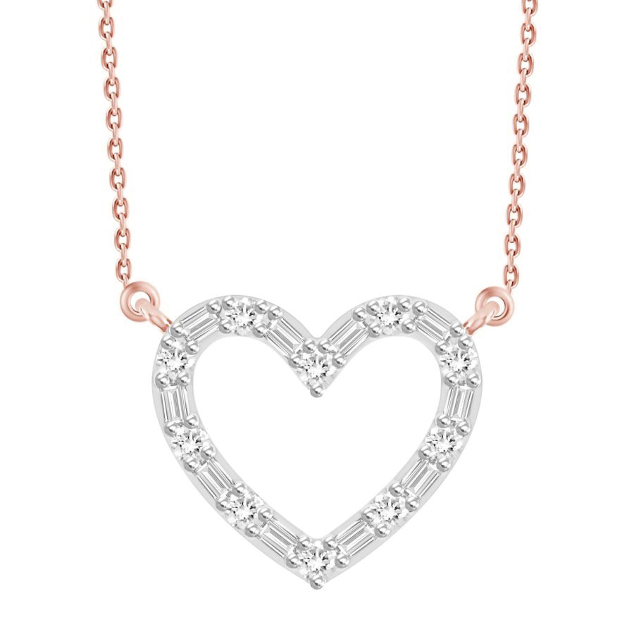 LADIES NECKLACE 0.33CT ROUND/BAGUETTE DIAMOND 10K ROSE GOLD