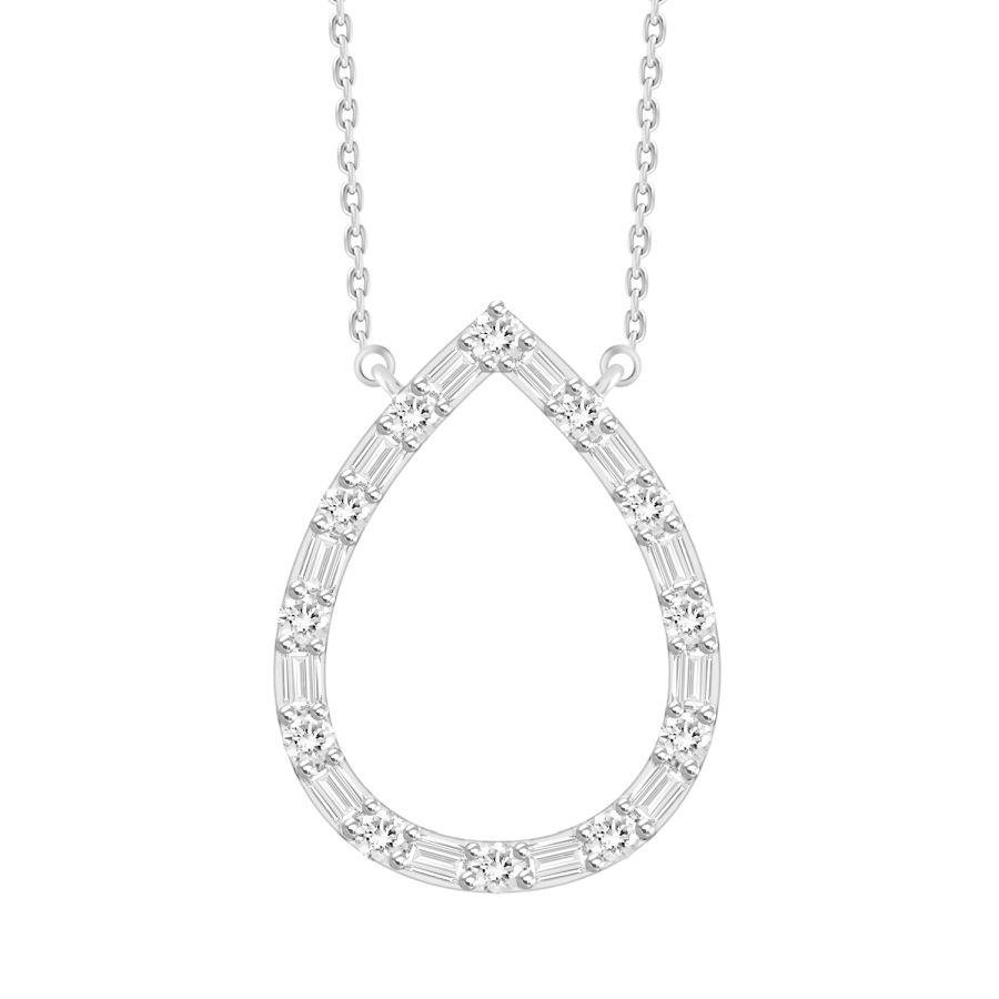 Home Necklaces LADIES NECKLACE 0.33CT ROUND/BAGUETTE DIAMOND 10K WHITE GOLD