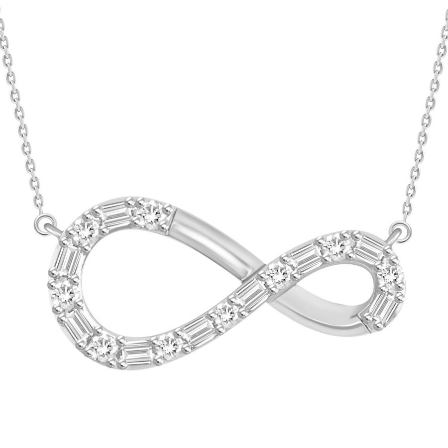 LADIES NECKLACE 0.33CT ROUND/BAGUETTE DIAMOND 10K WHITE GOLD