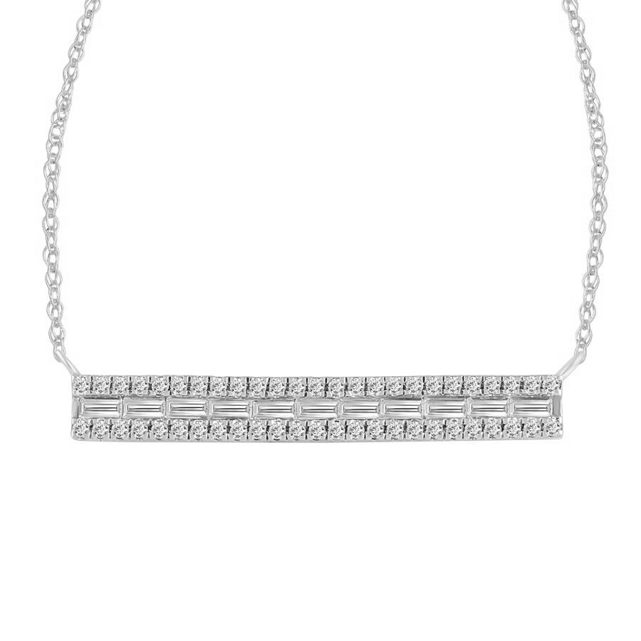 LADIES NECKLACE 0.50CT ROUND/BAGUETTE DIAMOND 10K WHITE GOLD