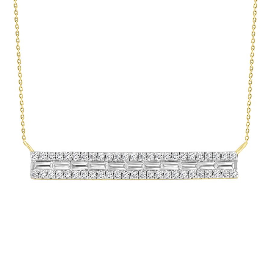 LADIES NECKLACE 0.50CT ROUND/BAGUETTE DIAMOND 14K YELLOW GOLD