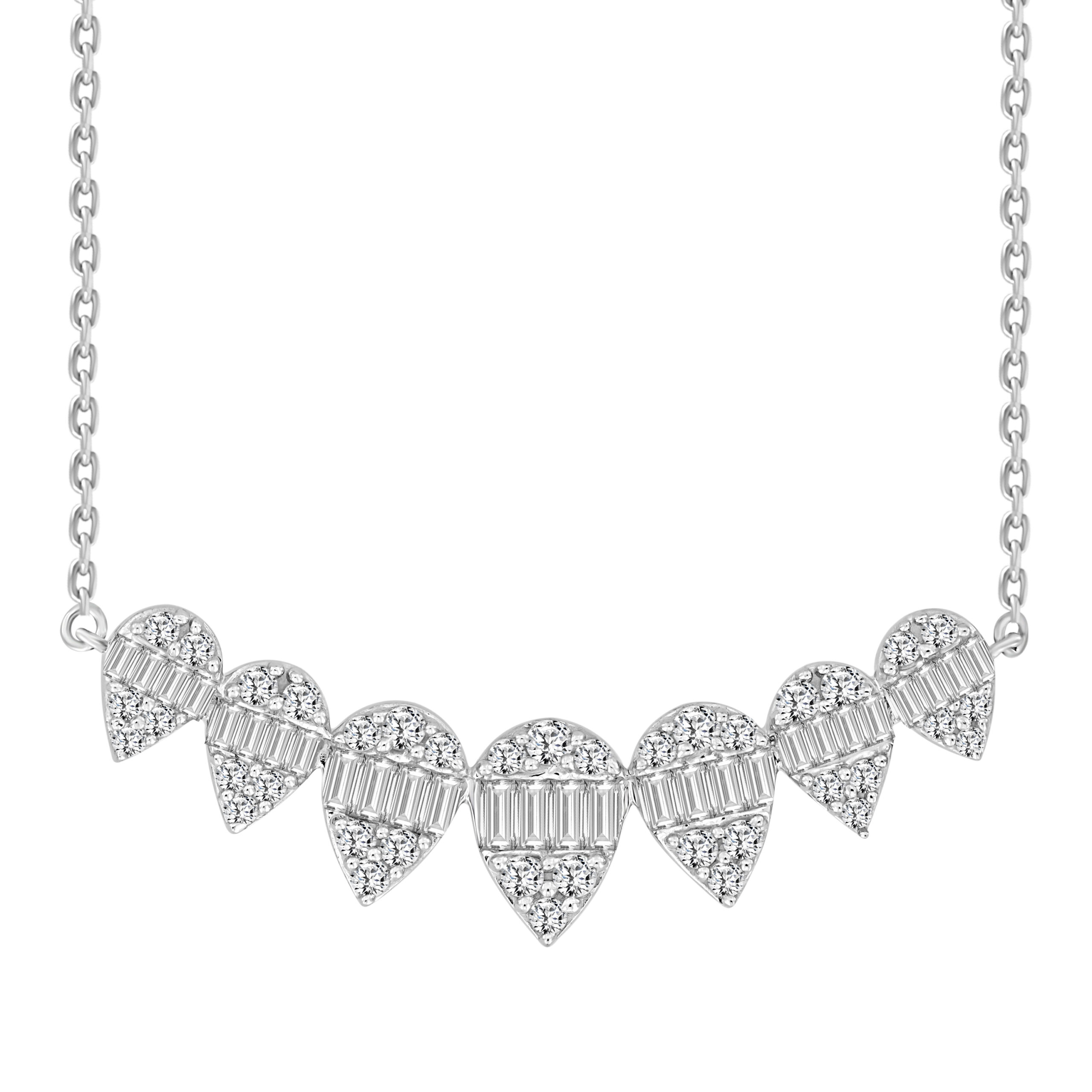 LADIES NECKLACE 0.75CT ROUND/BAGUETTE DIAMOND 14K WHITE GOLD