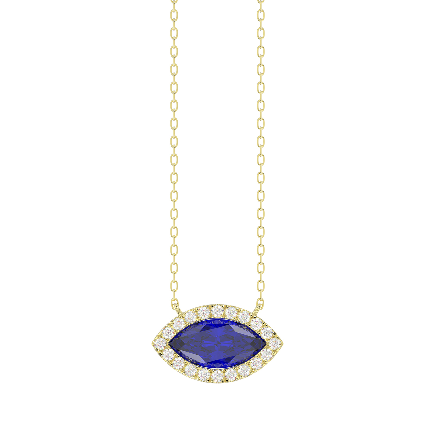 LADIES NECKLACE 0.85CT ROUND/BLUE SAPPHIRE MARQUISE DIAMOND 14K YELLOW GOLD