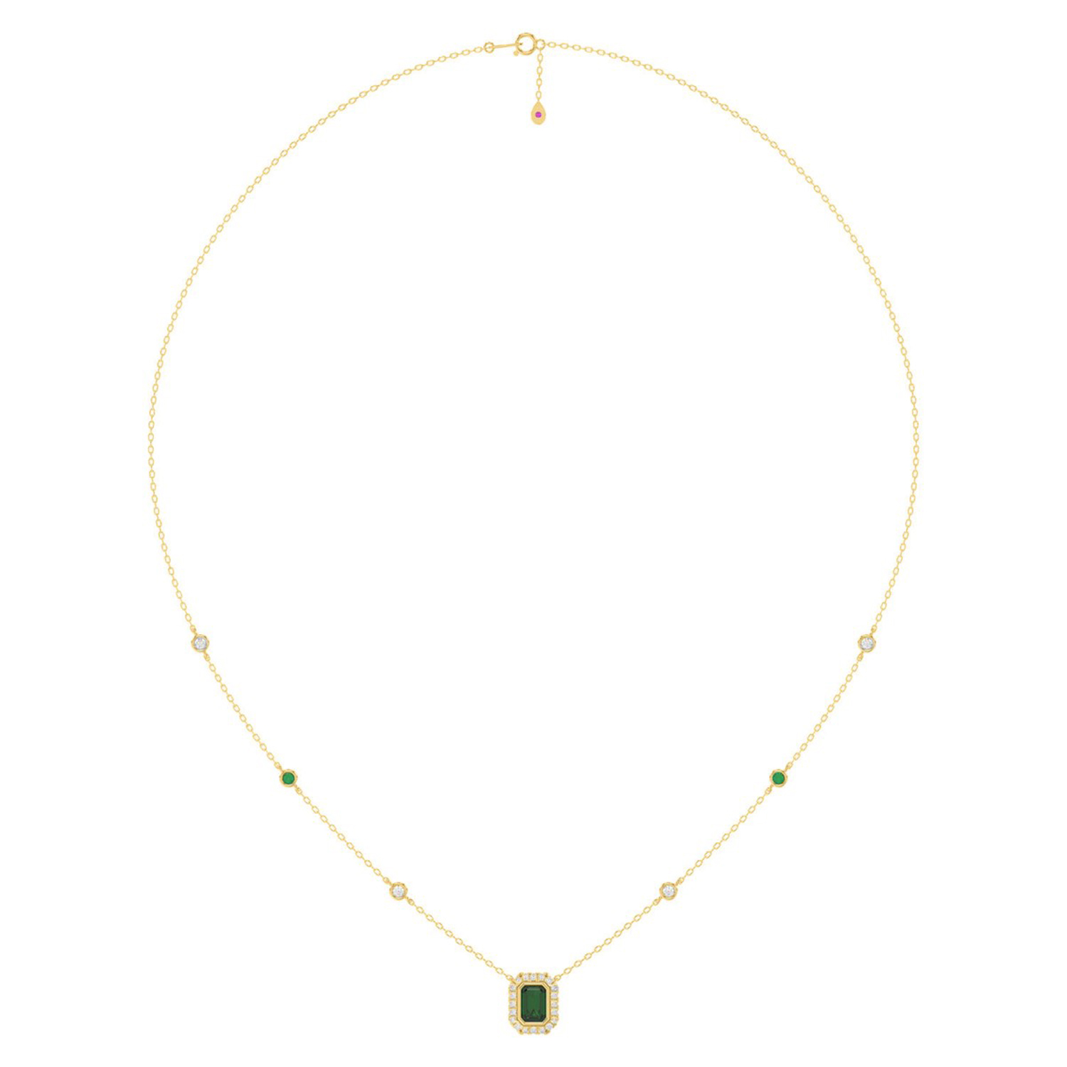 LADIES NECKLACE 1.00CT ROUND/GREEN EMERALD DIAMOND 14K YELLOW GOLD