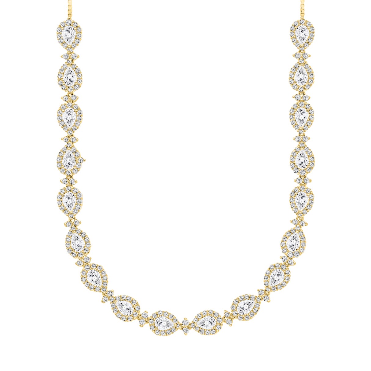 LADIES NECKLACE 16CT ROUND/PEAR DIAMOND 14K YELLOW GOLD