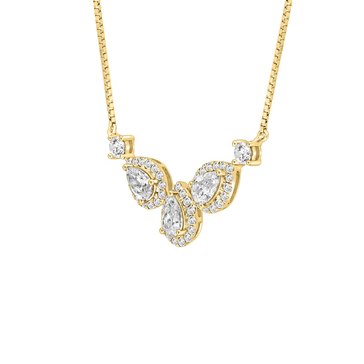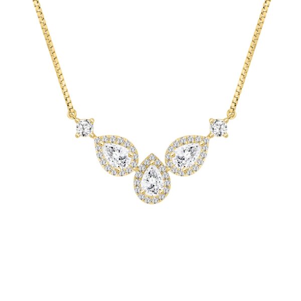 LADIES NECKLACE 3 1/2CT ROUND/PEAR DIAMOND 14K YELLOW GOLD