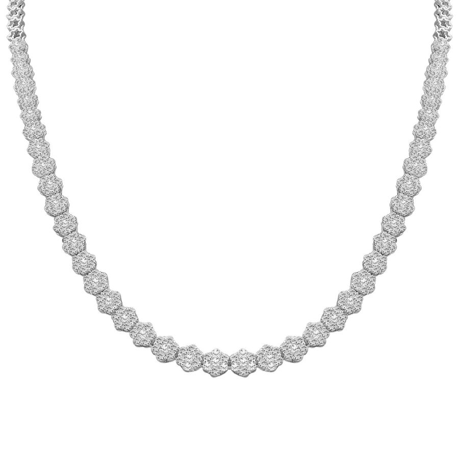 LADIES NECKLACE 7.00CT ROUND DIAMOND 14K WHITE GOLD