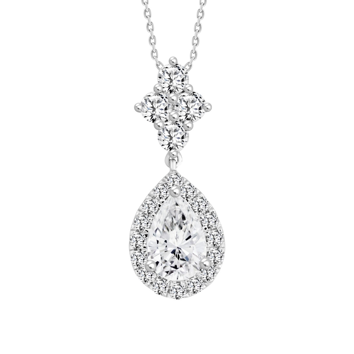 LADIES NECKLACE WITH CHAIN 2 1/2CT ROUND/PEAR DIAMOND 14K WHITE GOLD (CENTER STONE PEAR DIAMOND 1 1/2CT )