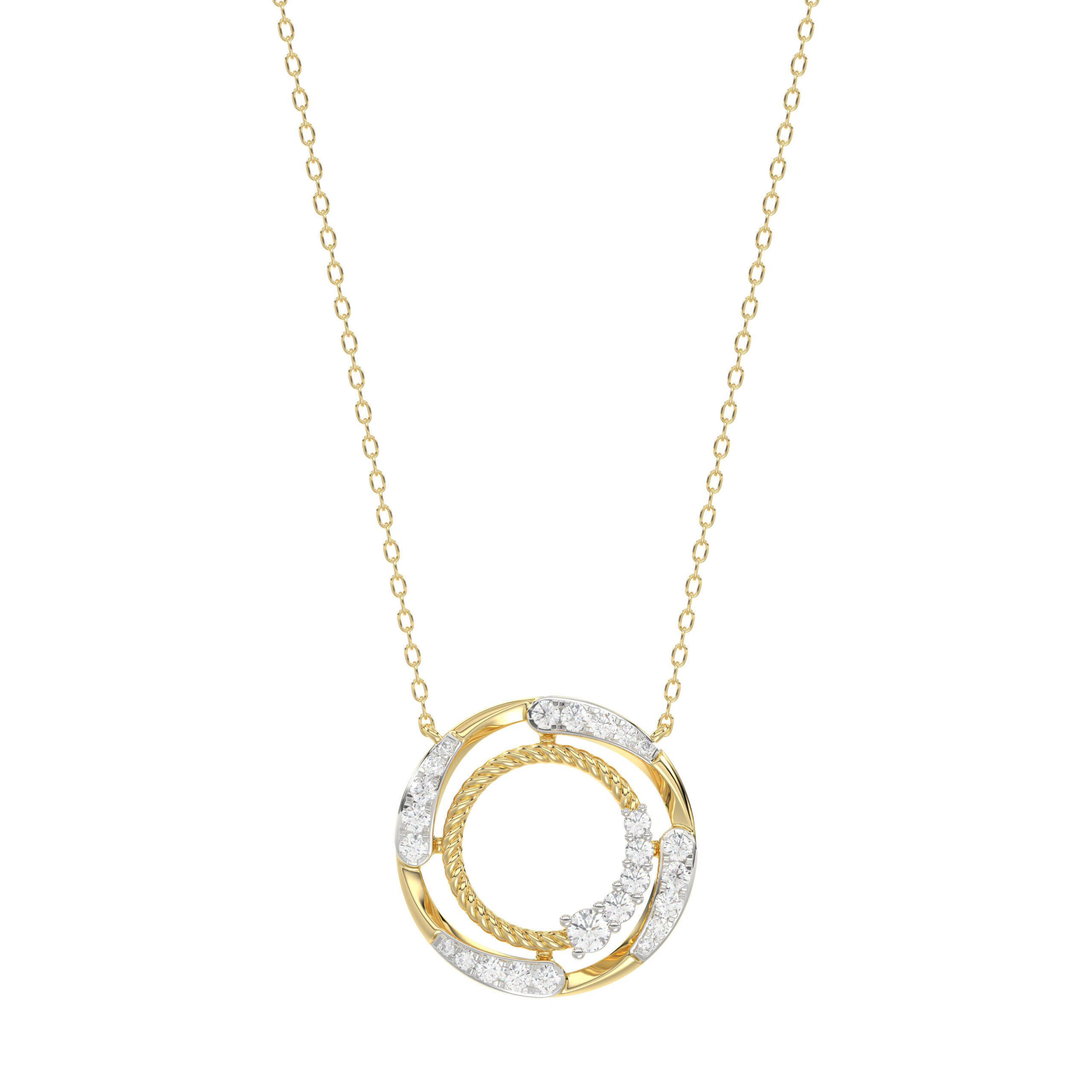 LADIES NECKLACES 0.50CT ROUND DIAMOND 14K WHITE/YELLOW GOLD