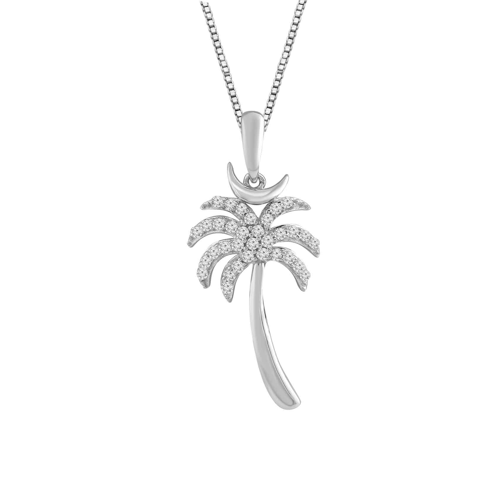 LADIES PALM TREE PENDANT 0.15CT ROUND DIAMOND 10K WHITE GOLD