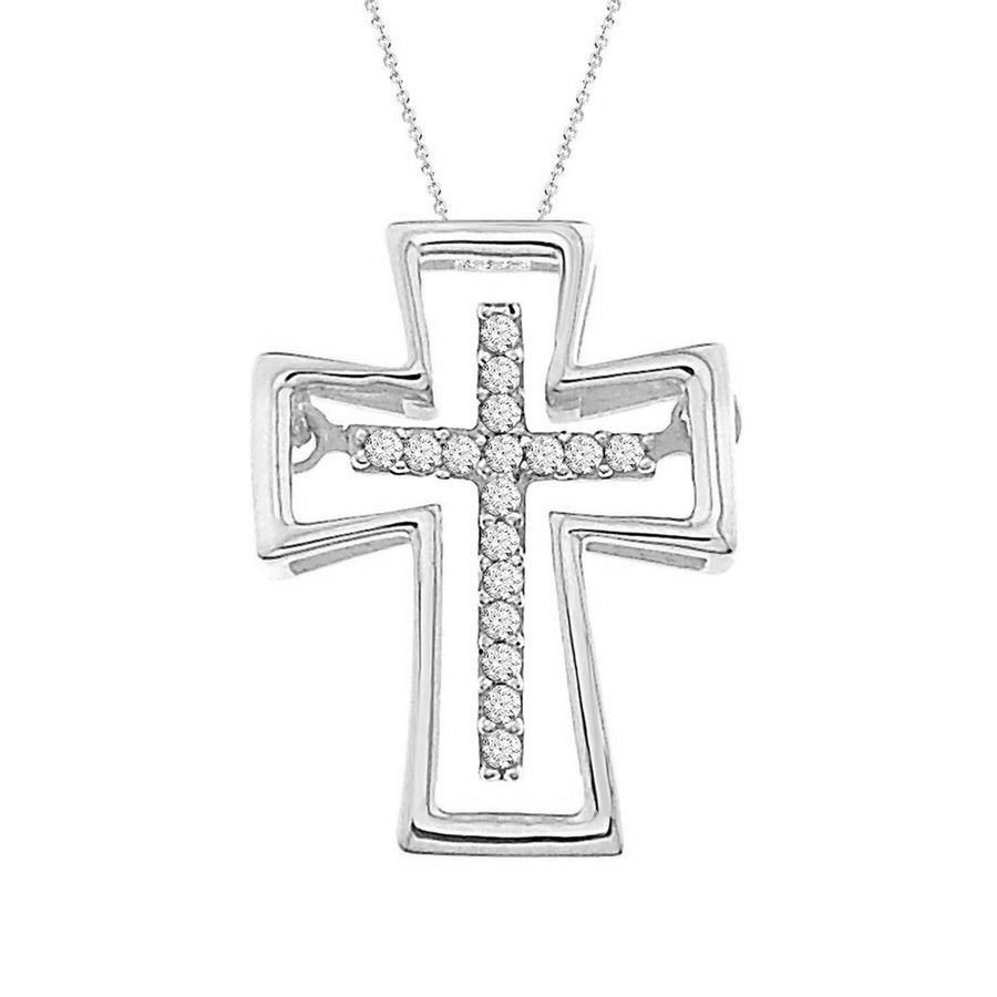 LADIES PENDANT 0.05CT ROUND DIAMOND 14K WHITE GOLD