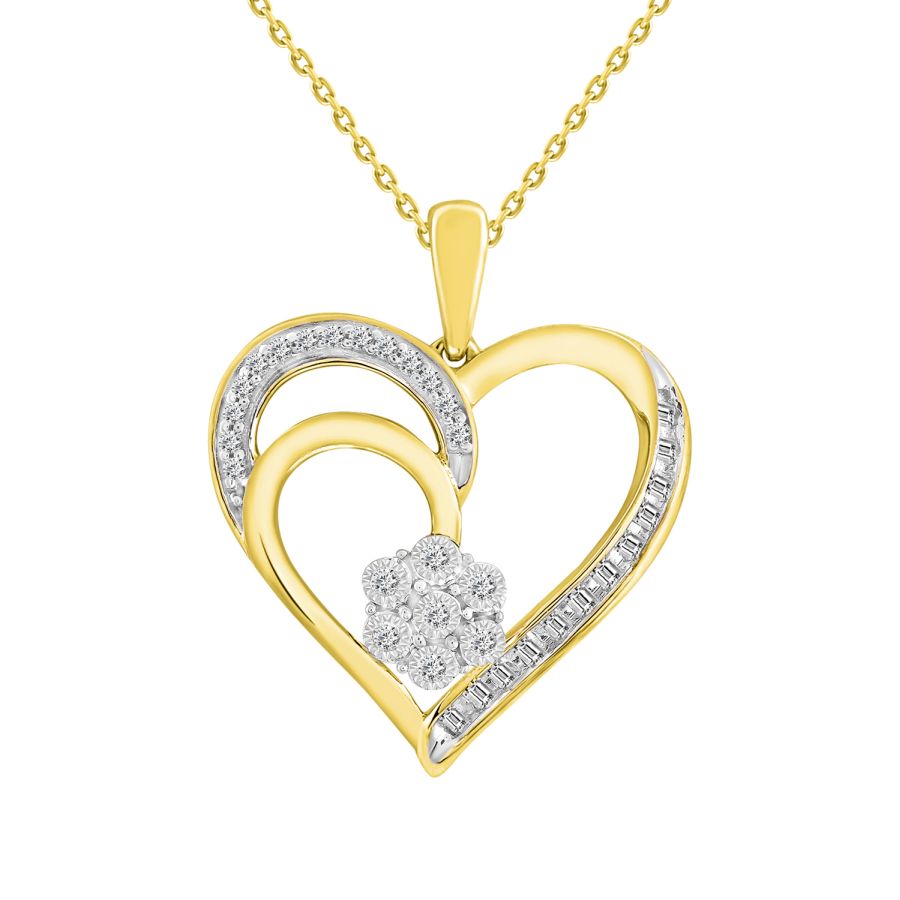 Home Pendants/charms LADIES PENDANT 0.10CT ROUND/BAGUETTE DIAMOND 10K YELLOW GOLD