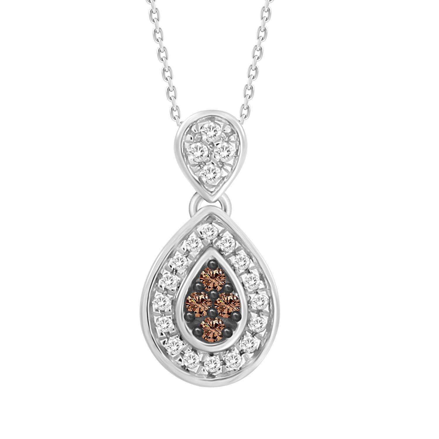 LADIES PENDANT 0.10CT ROUND DARK BROWN DIAMOND 10K WHITE GOLD